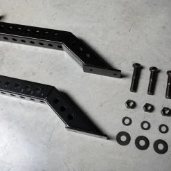 The 11-gauge steel Monster 30″ feet are sold here in pairs, and come with a 4-pack of 1” x 5” Monster Bolt Assemblies in your choice of a Black Zinc or Bright Zinc finish. The feet themselves have an MG Black finish, and include a series of 8 numbered holes (1” in diameter, spaced 2” on center) along the horizontal portion of the attachment, plus 3 additional holes along the angled portion.