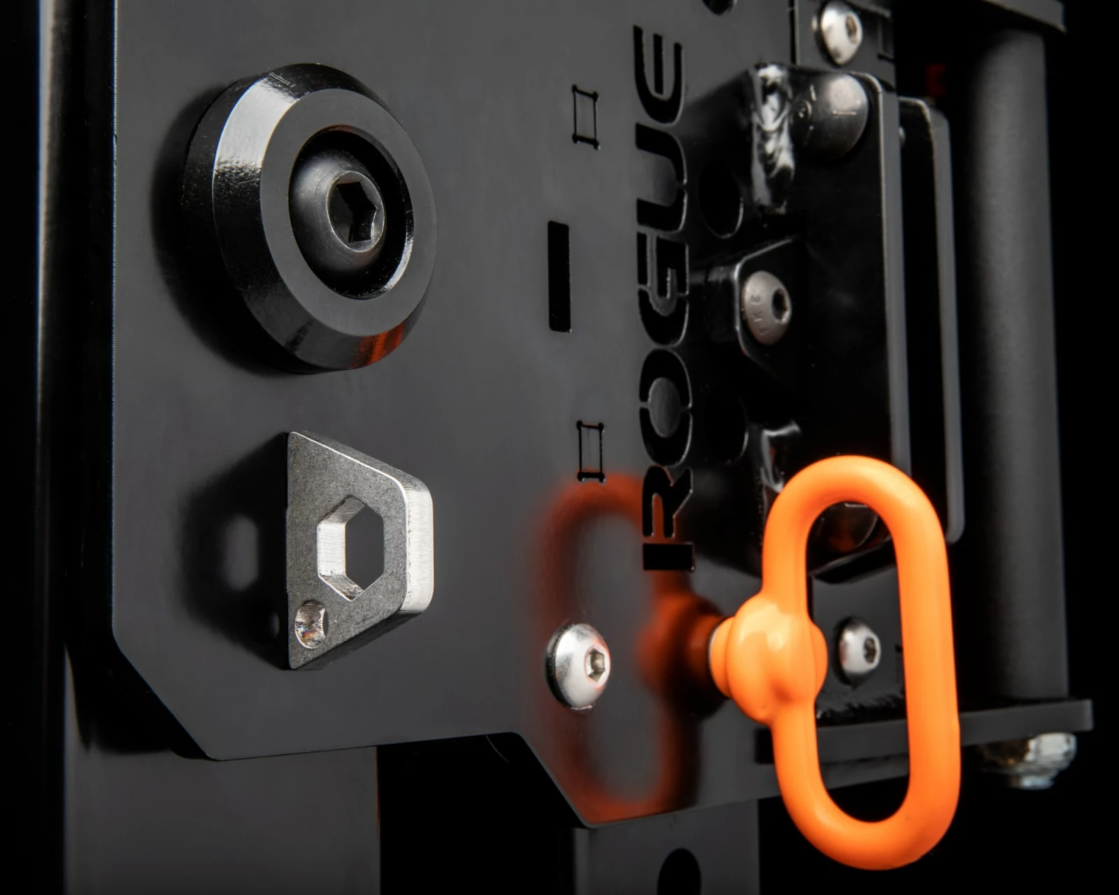 Compatible with any Rogue Monster Lite rig or rack a Monster version is sold separately), the LT-1 50 CAL Trolley and Lever Arm Kit gives athletes the ability to quickly reconfigure a unit for a wide range of different movements, without the need of a wrench or other tools. We’ve put years of research and refinement into this product, looking to create an optimal mechanism that can attach to an existing 3×3” upright and enable easy north/south adjustments with lock-in stability. Version 2.0 improves upon the original design with a new look and several key upgrades, including numbered uprights, a more robust tensioning system, and easier installation. We’ve also added a key for locking the lever arms in the “down” position—turning them into functional uprights.