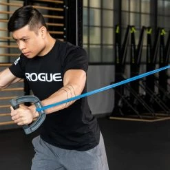 Rather than using both sides of a resistance band as traditional grips–and cutting its tension potential in half–the Rogue Band Handle makes it easier to use the entire band, controlled with more precision and less wasted energy.