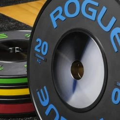Manufactured to the same high standard as our Rogue Competition Plates, these KG bumpers feature an all-black, gloss-matte-gloss finish and a unique, color-coded rubber stripe that wraps around the full perimeter of each plate. That stripe, along with raised, color-coded lettering on the face of the plate, allows for quick visual weight identification from any direction or distance.
