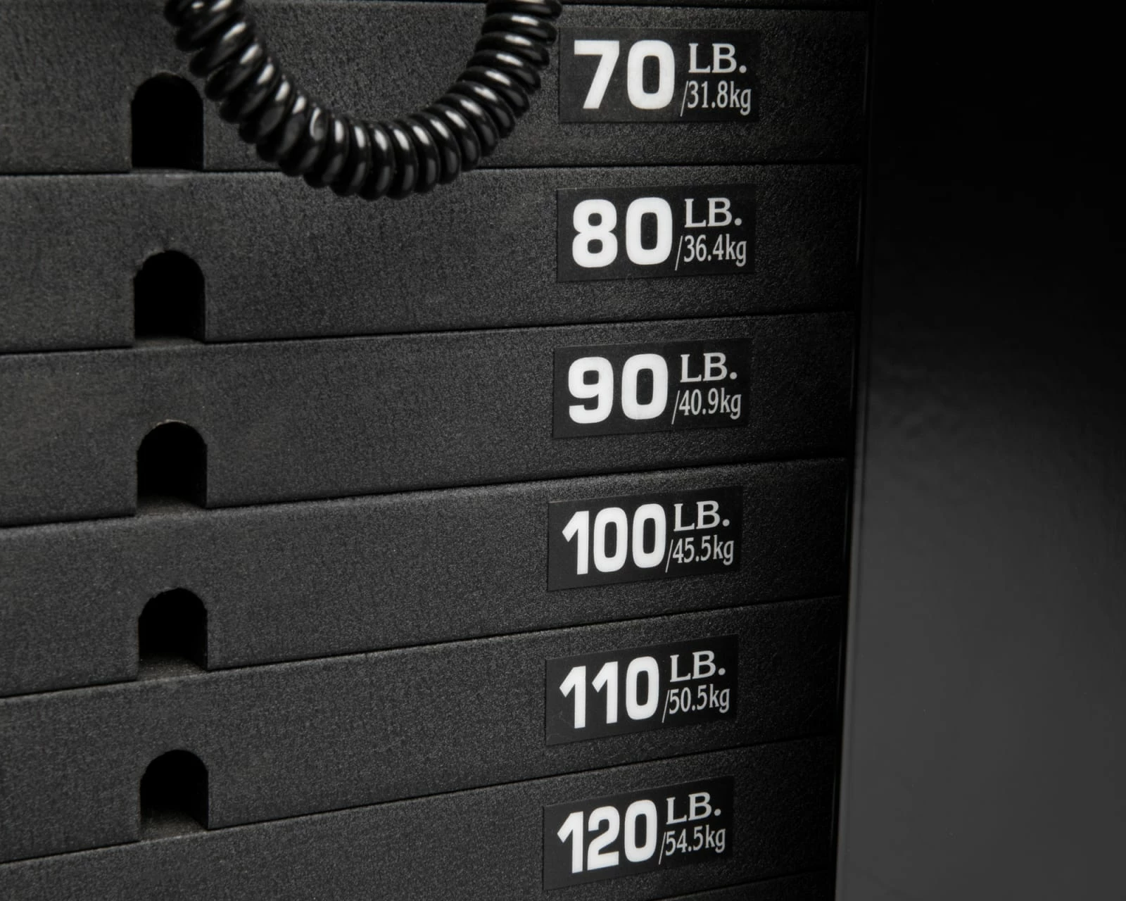The CT-1 Cable Tower is welded, painted, and assembled at our Reflex Factory in Milan, Illinois, utilizing 3×3” 11-gauge steel and parts cut at Rogue HQ in Columbus, Ohio. The system ships fully assembled and features many of the same components as our Monster Lat Pulldown 2.0 machine, including 6” machined aluminum pulleys, a USA MIL Spec cable, adjustable diamond tread footplate, and a custom black carabiner. Users can adjust the weight load via the 250 LB weight stack, which is broken into 10 LB increments with a 2:1 ratio (i.e., with the pin set at 250 LBS, the pull resistance is actually 125 LBS). Protective weight stack shrouds are also provided to help avoid pinch points.