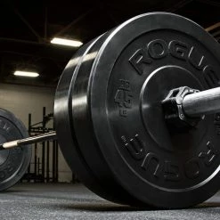 Same quality plates, revamped design. Rogue HG 2.0 Bumpers feature new artwork (still black, still old school), with the consistent dead bounce, durability, and distinctive smooth finish athletes have come to expect from the HG line. These quality, budget-priced plates are the IWF standard 450mm in diameter, but are cut thinner than a lot of comparable bumpers to allow for more weight to be loaded on the bar. HG 2.0’s also score an average of 88 on the Shore A Durometer scale, giving them a dead blow on par with a lot of the pricier comp plates in the industry.