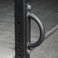 When installing your Rope Attachment Anchor, you can choose any custom height (as long as the holes are spaced 12″ on center to join up with the mounting plate), and all mounting hardware is provided—including bolt assemblies for both the 2″ and 3″ faces of an Infinity upright. Once installed, the outside edge of the anchor will extend 5″ (Depth) from the face of the upright.