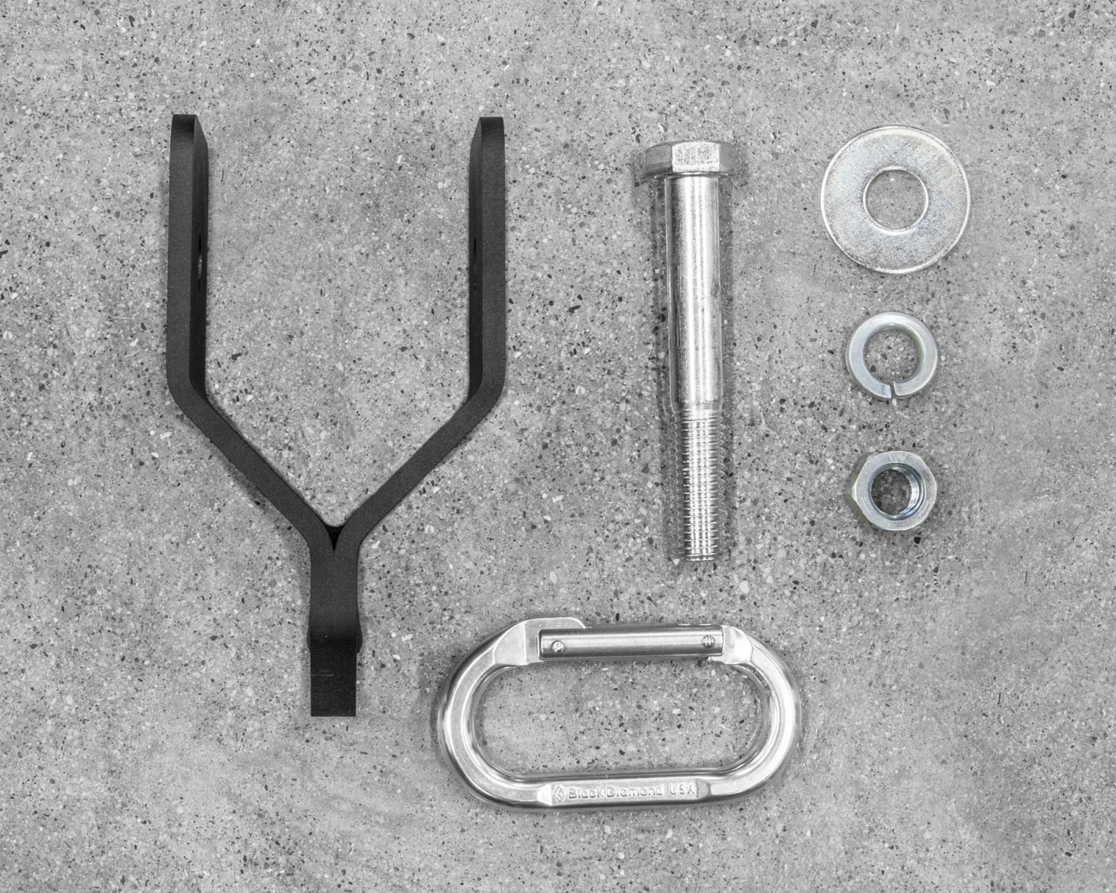 If you’re adding accessories to a Monster Lite Rig or Rack, this is where to start. The Monster Lite Shackle connects easily to any 3″ x 3″ tubing with 0.625″ holes, and offers a simple, secure way to hang rings, ropes, grip tools, and a wide range of other useful add-ons. Compatible with the Monster Lite 70″ Beam or a Monster Lite 43″ crossmember with holes, the laser-cut, American-made Shackle comes with a carabiner and 0.625″ mounting hardware.