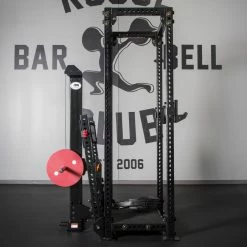 Set-Up: The Rhino and Rack ship freight, with some assembly required, and must be bolted to the floor before use. A pair of Monster 1” Wrenches are included, however additional tools will be required to finish assembly. When complete, the trolley tower will reach a height of 78.5″ from the floor, and the unit will extend approx. 21.5″ off the back face of the rack uprights closest to the tower. Additional clearance (beyond 21.5″) is required for adding plates.