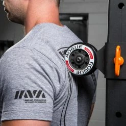 If you want the benefits of targeted, self myofascial release without having to contort your body on the floor or chase after loose lacrosse balls, the Rogue Rack Mount MobilityWOD Roller offers a unique, stand-up option for deep tissue massage therapy. Compatible exclusively with Rogue’s Monster Lite Series of rigs and racks, this detachable accessory features a 3″ wide channel made from 0.1875″ laser-cut and bent steel with a pair of 100MM wheels. Both wheels are made from durable urethane, superior to traditional foam rollers for producing a firm grip and greater shear in the joint tissues.Â