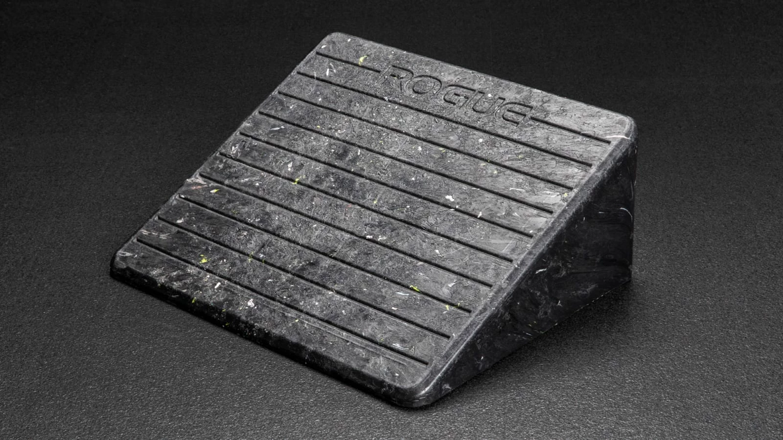 The Rogue Resin Slant Board is manufactured in Michigan using compression-molded, 100% post-consumer recycled plastic—the same material used in our Resin Plyo Boxes and Resin Squat Wedges. Each board measures 13” wide x 10.5” deep, with a single standard incline of 25-degrees, rising to a height of 5.125” at the back (this is a significantly steeper incline than our 10-degree, 1” tall Resin Squat Wedge).