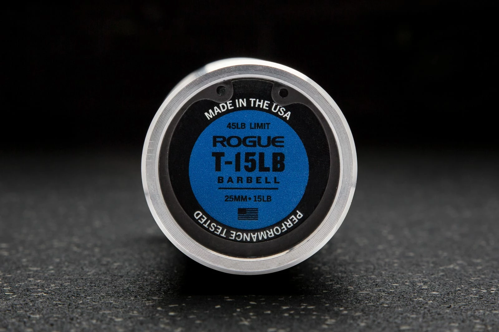 Fully machined and assembled at the Rogue factory in Columbus, Ohio, the T-15LB Technique Bar features a 28MM bare aluminum shaft with dual Powerlifting and Olympic knurl marks. With this design, we’ve also spaced the collars at the same distance as an IWF standard competition bar, giving athletes the ability to maintain proper grip position as they progress from a light bar to a Men’s or Women’s weightlifting bar.