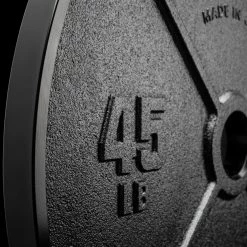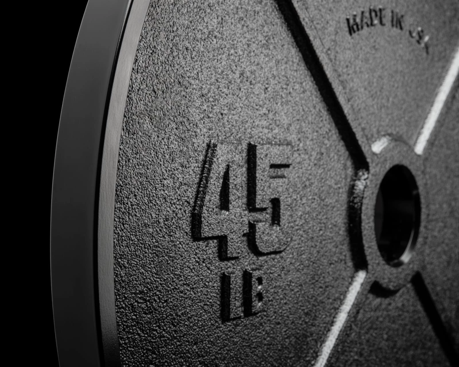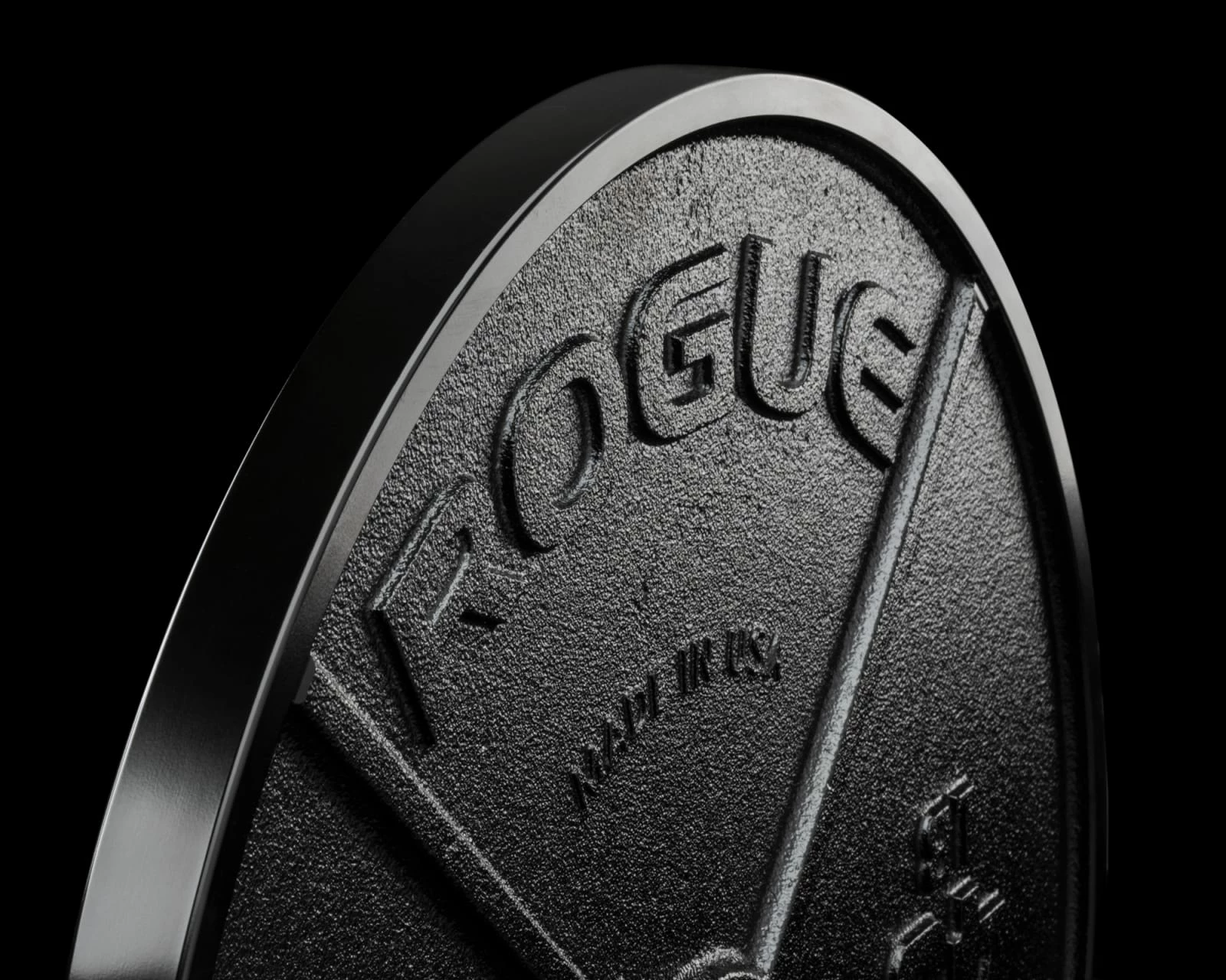 Continuing our mission to bring quality cast iron plate production back to America, Rogue’s USA Olympic Plates are, in our opinion, the finest series we’ve ever developed. Each plate, from the 55LB increment down to the 0.25LB change plate, features a slim profile, durable E-Coat finish, and a unique 4-surface machining process that ensures it fits securely on the bar, is uniform in diameter, and sits flush against other plates when loaded.