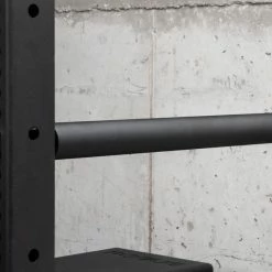 The unit comes standard with Infinity J-cups, a 24” removable pin/pipe safety set, and side panels with laser-cut Rogue branding. There is 1″ on-center hole spacing up the front and back of the uprights to allow for maximum height adjustability, meaning the standard 17.5″ bench height can be moved up and down by 1″ increments to serve a wide variety of athletes. Customers also have the option of adding elevated spotter decks that bolt onto the bench, giving spotters extra leverage and traction in case of a missed lift.