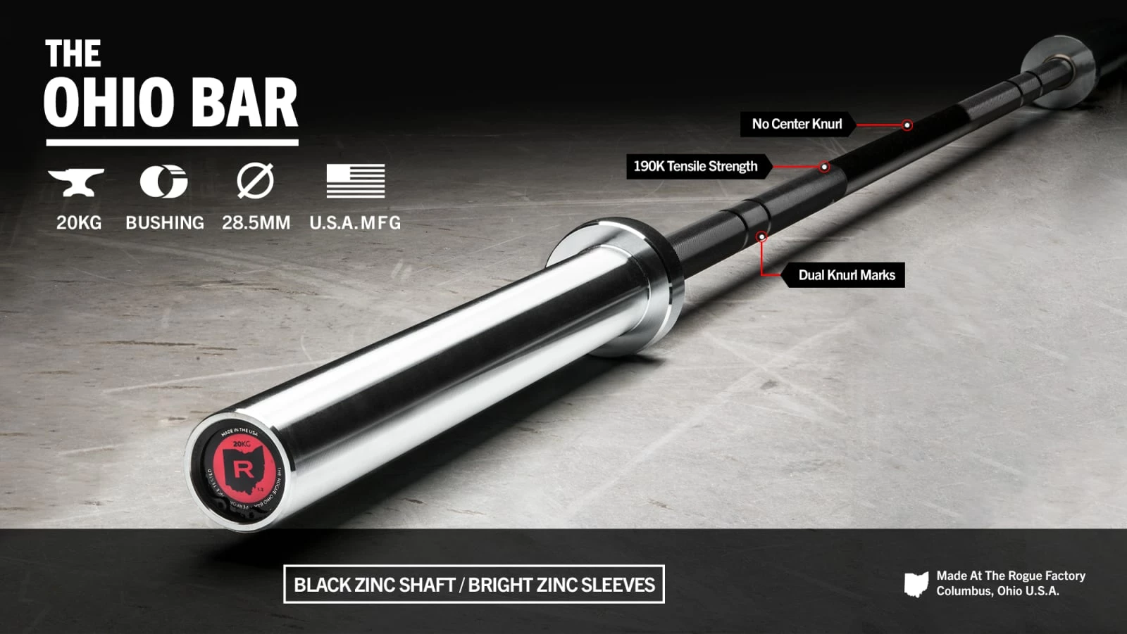 Each Rogue Ohio Bar is machined and assembled in Columbus, Ohio, and includes a lifetime guarantee against bending*.