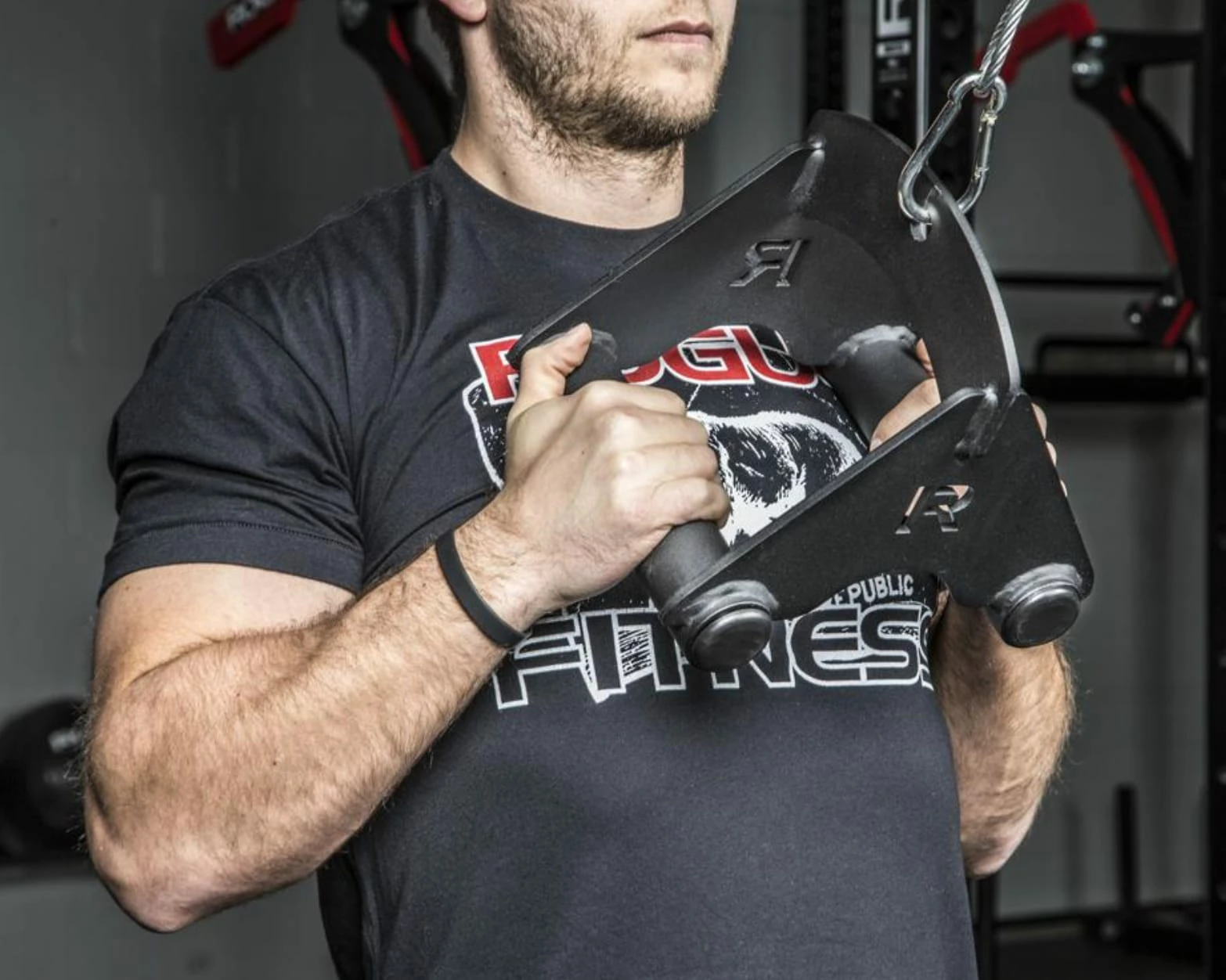 Spud Inc.’s light and portable Econo Pulley sets create an instant, customizable lat pulldown machine within your existing rack or rig—with a total load capacity of up to 550LB. These pulleys are made in the USA and are compatible with Rogue’s Monster Grip Triangle Attachment.