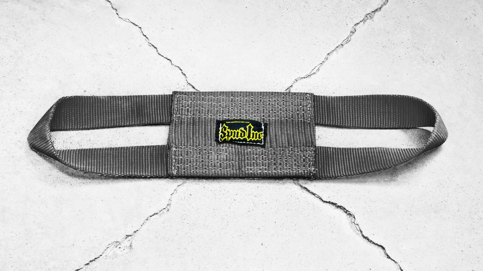 Spud Inc designed the stone strap for people that are in between stones and for people that want to train the big stones. The stone strap is easy to use and can offer a huge training benefit by building muscle memory on the big stones. Simply cradle the stone using the stone strap and lap it just like you would any other stone, then ditch the strap and place the stone. The stone strap can also be used to: pull the chain, make modified farmer walk handles, and do close grip pull-ups with. The stone strap is a great tool with many uses for training strongman events.